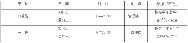 4.请研究生与指导教师联系,并由导师将预答辩或开题的研究生名单提前2周告知系主任,以便安排。