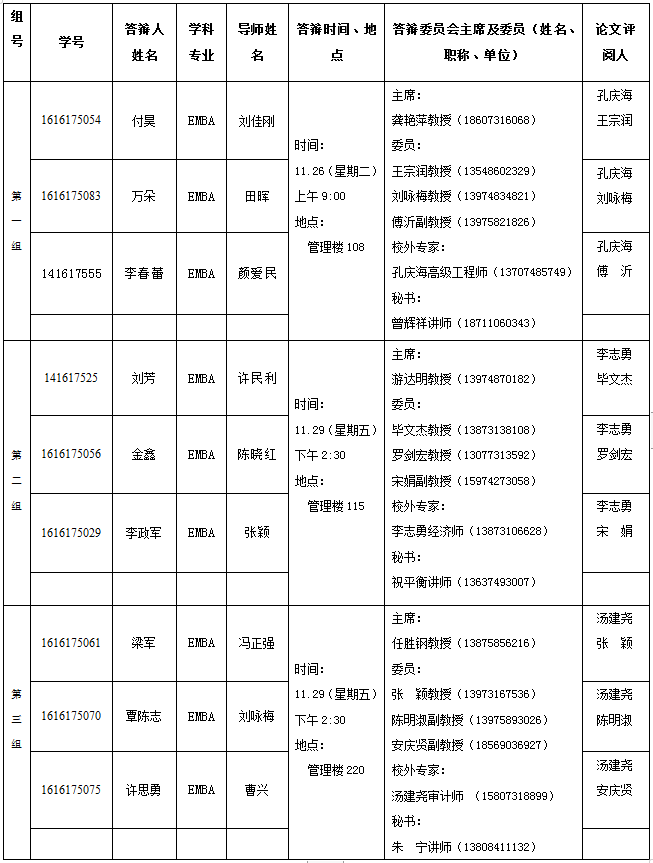 5、于答辩后三天内将答辩材料交至EMBA中心(管理楼112)何老师。