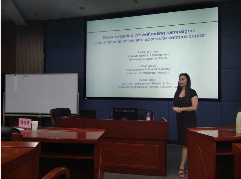 2018年7月,美国加州大学戴维斯分校陈蓉教授应邀来访,在管理楼管阶二开展了题为Reward-Based Crowdfunding Campaign : Informational Value and Access to Venture Capital的学术讲座。讲座由周艳菊教授主持,毕文杰教授、周雄伟副教授及相关博硕士研究生参加。陈蓉教授为美国加州大学戴维斯分校管理学院教授,研究领域为:医疗管理,服务调度,定价,机制设计等。陈蓉教授担任Production and Operations Management 和Focused...