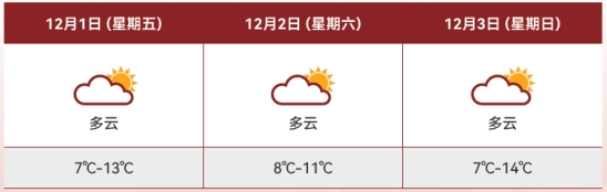 2023年12月1日14:00-19:00;2023年12月2日07:30-08:40
