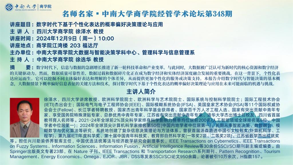 名师名家▪william威廉中文官网经管学术论坛第348期——四川大学william威廉中文官网徐泽水教授