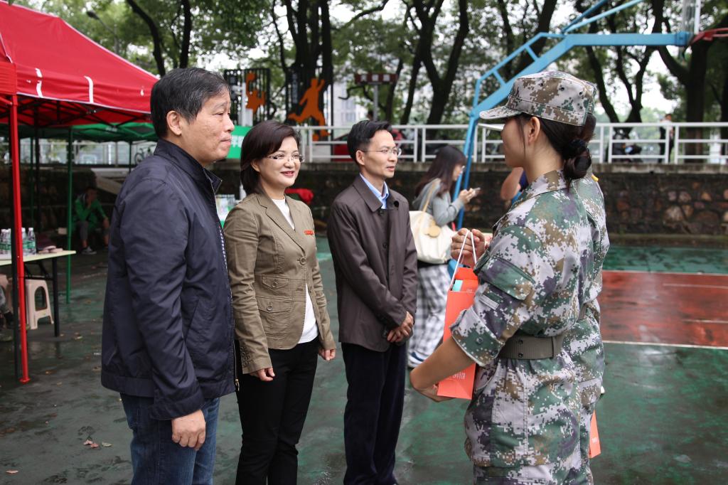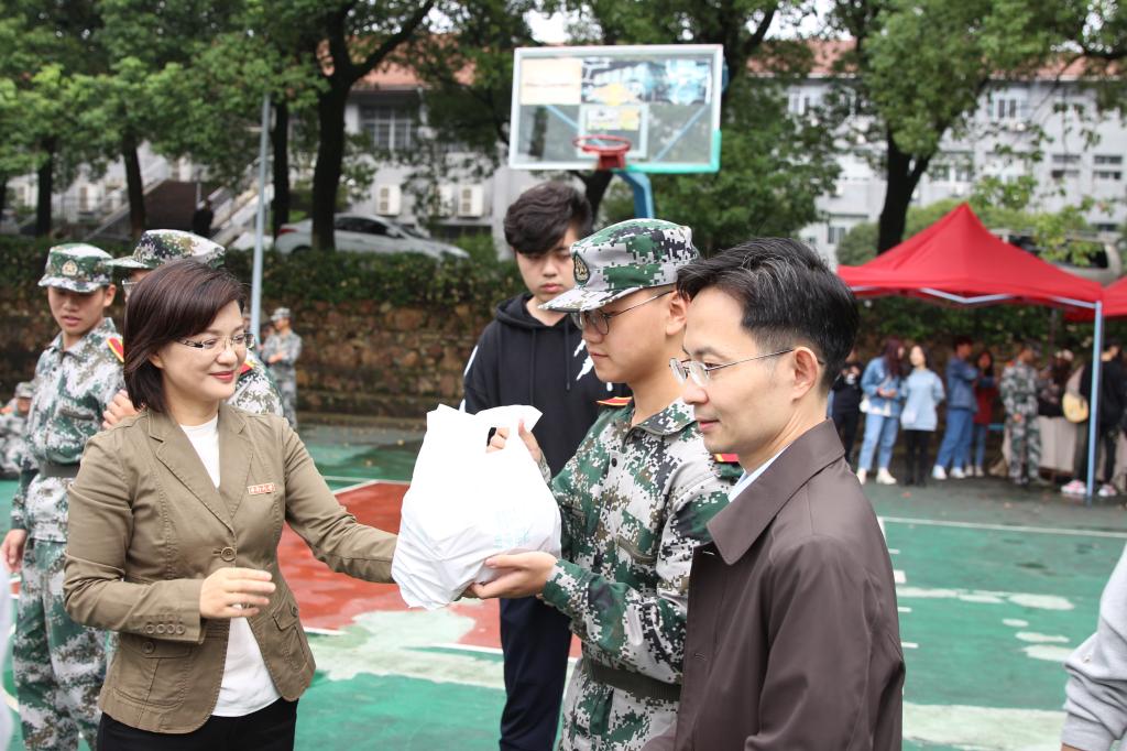 9月24日上午,william威廉中文官网经理龚艳萍、党委书记任胜钢、副书记陈迎明,在2020级辅导员陈文、谢虎的陪同下来到南校篮球场,看望慰问军训中的2020级新生。