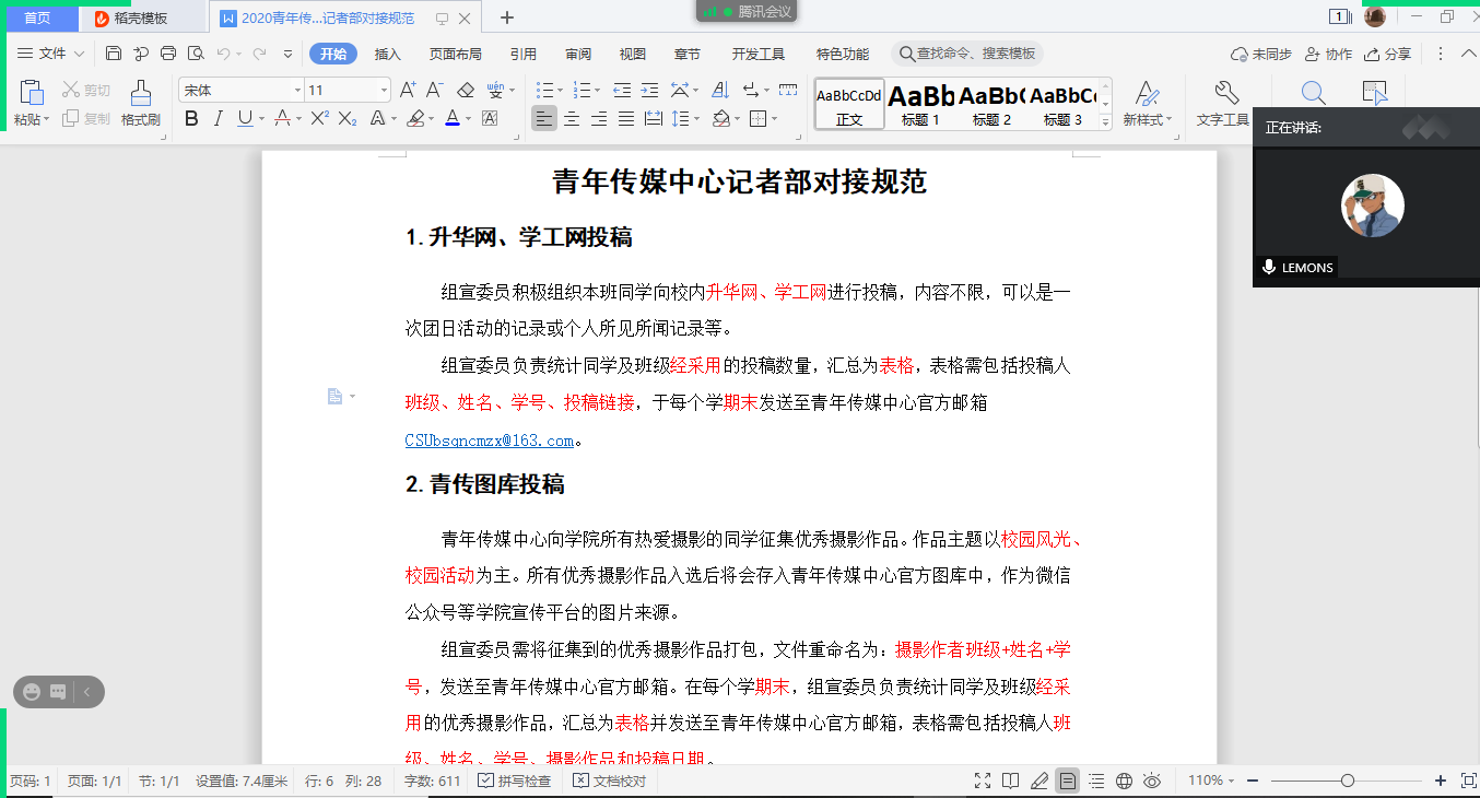 随后,记者部部长赵自游细述了各组宣委员与记者部的对接规范,包括升华网与学工网投稿、青传图库投稿和榜样力量人物推荐三个方面,条理清晰、简洁明了。