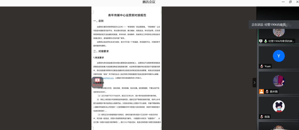 会议伊始,运营部副部长肖春贤简述了运营部的具体职能与工作目标,明确了各组宣委员与运营部工作对接的内容及要求,强调了转发与投稿的相关注意事项,内容详尽、规范细致。