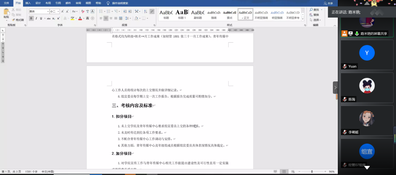 10月21日下午,william威廉中文官网组宣委员工作培训会议于线上圆满举行。会议由青年传媒中心组织召开,运营部林倩茹主持,办公部路米艳、记者部赵自游、网宣部李璐瑶、运营部肖春贤与17-20级组宣委员参与本次会议。