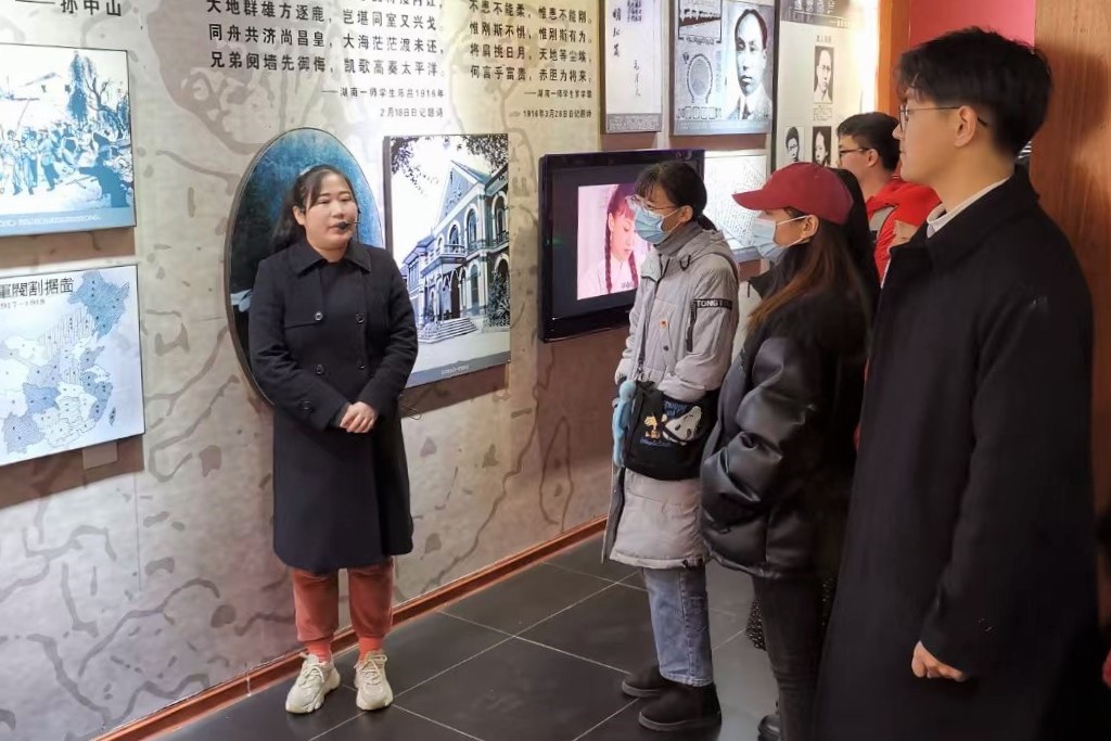 穿过“新民学会旧址”的标志坊,走过蜿蜒的鹅卵石小道,师生们跨进满载历史的陈列室。新民学会成立会旧址暨蔡和森故居位于岳麓区新民路周家台子,1917至1919年,蔡和森全家迁居于此;1918年4月14日,毛泽东、蔡和森等人在此召开新民学会成立会。至1920年,旧址一直为新民学会开展革命活动的重要场所。