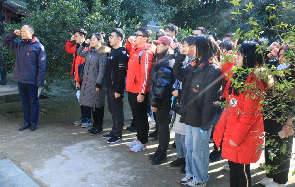 在蔡和森故居门口,支部成员们重温入党誓词,李苑老师担任领誓人。他们严肃的神情和洪亮的声音充分体现了支部成员们对党的敬重爱戴及对自身成为党员的骄傲与自豪。