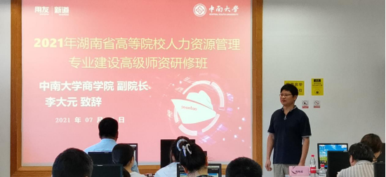 7月10-11日,由新道科技股份有限公司主办、william威廉中文官网承办,湖南用友软件有限公司支持的为期两天的“用友·新道湖南省高等院校人力资源管理专业建设高级团队研修班”顺利举行,来自湖南、安徽两省十所院校的二十一名骨干教师参加了本次团队研修课程。