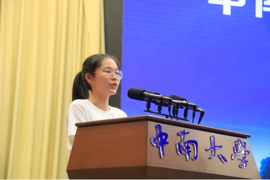 本科生新生代表、经济管理类2110班吴昭如的发言展现了中南新成员的风采。恳切的言辞流露出她对老员工活的憧憬,表达了新生们心怀家国、把个人的理想追求融入到党和国家的事业之中、让青春在奉献中焕发光彩的志向。