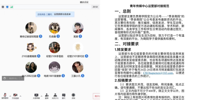 紧接着,段成卓介绍了运营部部门总则及对接规范,并详述转发、投稿等规范细则。