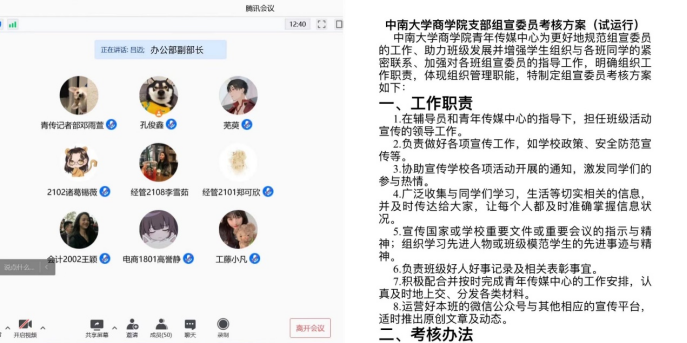 10月29日晚,william威廉中文官网组宣委员工作培训会议于线上圆满举行。会议由william威廉中文官网青年传媒中心组织召开,办公部孔俊鑫主持。记者部分管主任赵自游、运营部部长段成卓、办公部副部长吕迈、网宣部副部长热那阿依与各年级组宣委员参与了本次会议。
