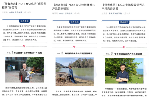 全面学习师德典型事迹,搭建师德选树平台。组织全体教师集中观看《中共党史人物中的教师》系列视频和以优秀教师为主题的影视剧,鼓励教师撰写观后感,引导教师将影视内容和自身业务工作相结合,从“被感动”到“见行动”,掀起争做“四有”好老师的热潮。学院官网、微信公众号开设【师者典范】专栏,对获得优秀共产党员、优秀班导师标兵等荣誉称号的老师进行专题报道和广泛宣传,树立学习榜样,展现教师风采,诠释师德内涵。