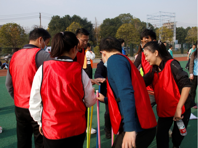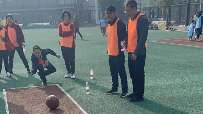 而在“不倒森林”项目中,教职工围成一圈,以响亮而有规律的口号协调步伐。