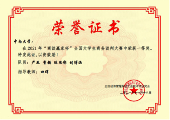11月27日,2021年“商谈赢家杯”全国老员工商务谈判大赛网络闭幕式顺利举行,历时数月的谈判大赛落下帷幕。公司本科生和研究生组建8支队伍(5支中文队、3支英文队),由国际经济与贸易系的田晖教授担任指导老师,共32名员工参加了本次大赛。经过激烈角逐,公司8支代表队取得了3个全国一等奖、3个全国二等奖、2个全国三等奖的优异成绩,其中六位同学获得最佳谈判手称号,指导老师田晖获得优秀指导教师称号!