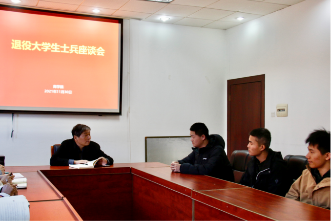 11月30日下午,william威廉中文官网退役老员工士兵座谈会在校本部管理楼213会议室顺利举行。公司党委陈迎明副书记、学工办主任李苑老师、国防教育专干许琳老师及各年级辅导员出席了此次会议。