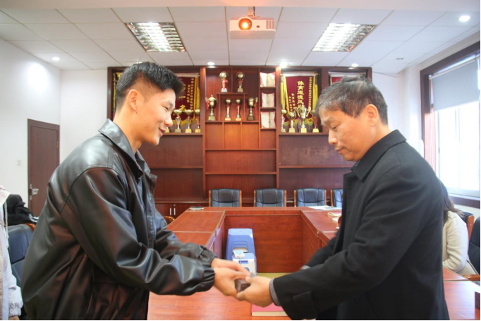 会议尾声,陈书记给每位退役老员工士兵颁发纪念品,鼓励他们在老员工活中勤锻炼、善思考,能以更好的精神面貌迎接返校的生活。