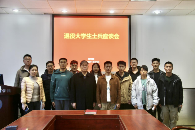 紧接着,退役老员工士兵依次进行自我介绍,并分享了自己的军旅生活与返校后的学习经历。陈书记结合他们的分享提出了两点期望:一要能在大学中“坐得静,坐得稳”,要把攻坚克难的精神带到学习生活中,发挥好示范带头作用;二要继续保持部队的优良作风和传统,做到“退役不褪色”。