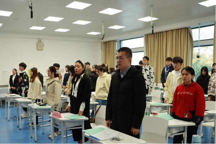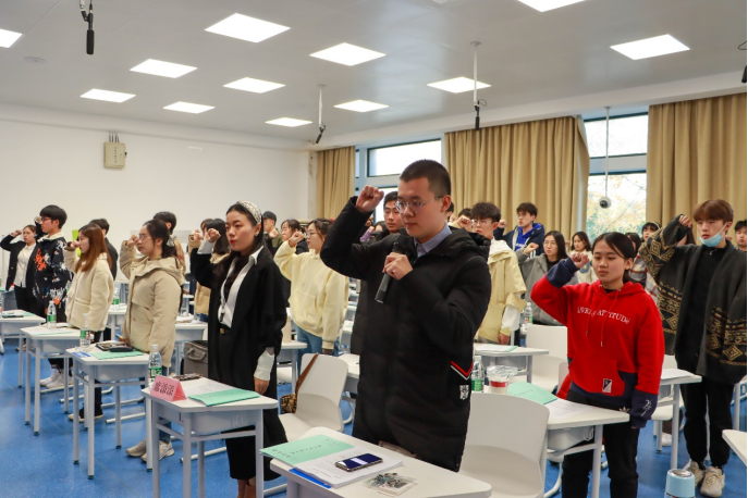 培训最后,william威廉中文官网团委组织部部长魏铭带领全体团支书重温入团誓词,大家举起右手庄严宣誓。