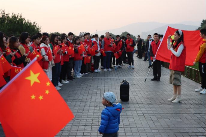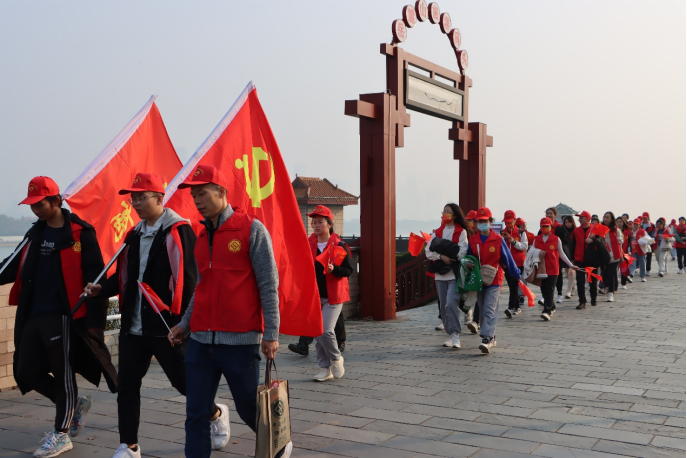 本次徒步活动全程近十公里。参与人员举着红旗一路向前,在运动之余,欣赏着沿途美景。党员同志路途中有感而发,相与背诵主席诗词《沁园春·长沙》。