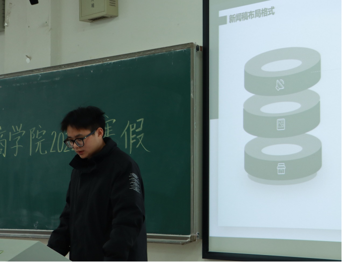 社会实践过程的每一步要走稳、走实,后期的宣传工作也必不可少。接下来,段成卓部长详细讲解了新媒体推送的制作方法与思路,从文案和排版两方面讲述如何制作一篇优秀的推送。胡乐部长则从文字稿的撰写要求、摄影要素及优秀稿件筛选标准三个板块为大家解读新闻稿的写作方法。