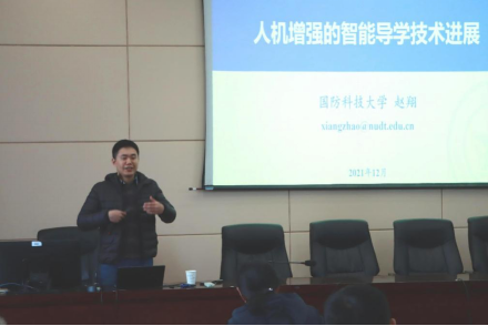 赵翔教授的讲座主题为“人机增强的知识森林智能导学技术”。他探讨如何通过“知识引导+数据驱动”方法实现人机增强的知识森林智能导学,并介绍了国防科技大学“人机增强的知识森林智能导学技术”研究课题组在构建大型开放实践数据集、可解释知识追踪等方面的研究进展。研究中心的张红宇、米允龙等师生与赵教授就知识森林、推荐的可解释性、数据集应用等问题展开讨论,与会师生收益匪浅。