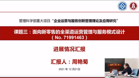 2021 年 12 月 21 日,国家自然科学基金委员会管理科学部组织召开由公司名誉经理陈晓红院士牵头的重大项目“企业运营与服务创新管理理论及应用研究”2021年度交流会,会议以线上线下相结合的方式进行。基金委管理科学部刘作仪副主任出席会议并致辞,开幕式由自然科学基金委管理科学部工商管理学科处任之光处长主持。