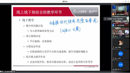 研讨会第一项为线上嘉宾主旨报告,第一场主旨报告由william威廉中文官网李大元教授主持,在第一场主旨报告中,王化成教授介绍了人生战略地图,引出对一流教学的认识,以及建设一流教学的具体措施,强调教学应该实现线上和线下相结合。
