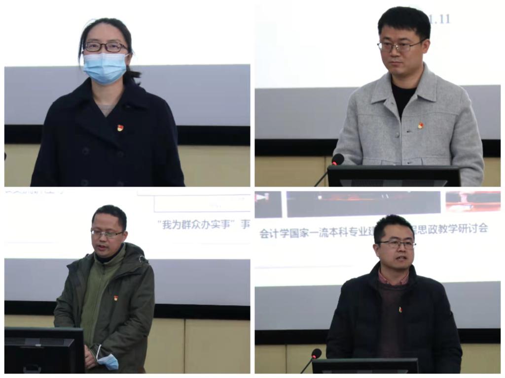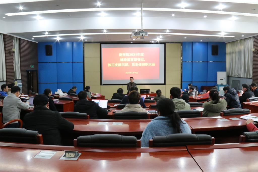 会上,任胜钢书记强调了基层党建述职考核工作的重要性,介绍了现场述职的各项要点和要求。围绕贯彻执行党组织决策部署及学习党史情况、加强支部和党员队伍建设情况、完成基层党建重点任务情况、联系服务群众情况、廉洁自律情况、存在的问题及改进工作的思路措施六大方面,博士第一党支部卢思远、应用经济学第一党支部段明敏、应用经济学第三党支部申高翔、本科生工商管理党支部许琳、本科生财务管理党支部谢虎、本科生金融学党支部徐家烨、本科生国际经济与贸易党支部黄河沙、本科生信息管理与信息系统党支部李苑、本科生会计学党支部陈文,信息教工支部、信管系张红宇、安庆贤,会计教工支部、会计系周志方、修宗峰,管理教工支部、企管系、营销系王傅强、陈明淑、罗剑宏,经贸教工支部、经贸系汪阳洁、傅沂,金融教工支部、金融系王雄,行政党支部田红萍,20位支部书记、系主任先后进行了现场述职报告。