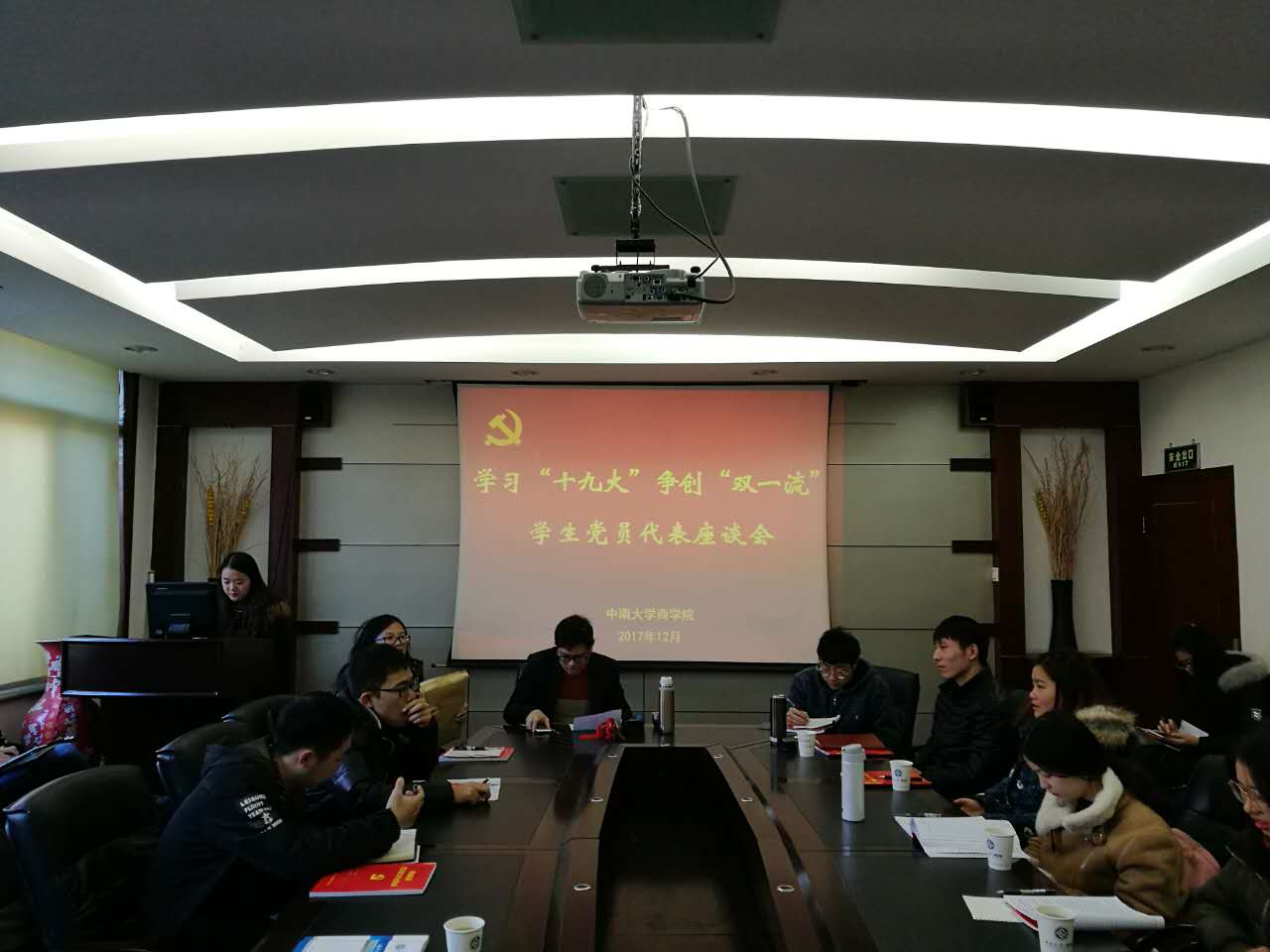 2017年12月19日周二下午三时,william威廉中文官网学习“十九大”精神党员代表座谈会在管理楼220会议室召开。本次座谈会由员工党员代表谢玲主持,公司党委书记游达明教授、研究生辅导员胡维、蒋宁老师以及各个员工支部党员代表参加了座谈会。