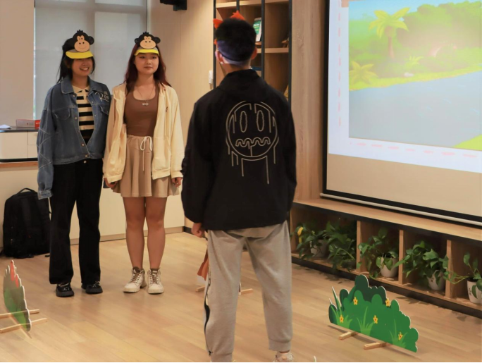 接下来,志愿者们表演了一场关于解谜的情景剧,这激发了孩子们对本次活动的兴趣,鼓励他们积极参与到这场天马行空的思维旅行中来,同时也将活动引入游戏环节。