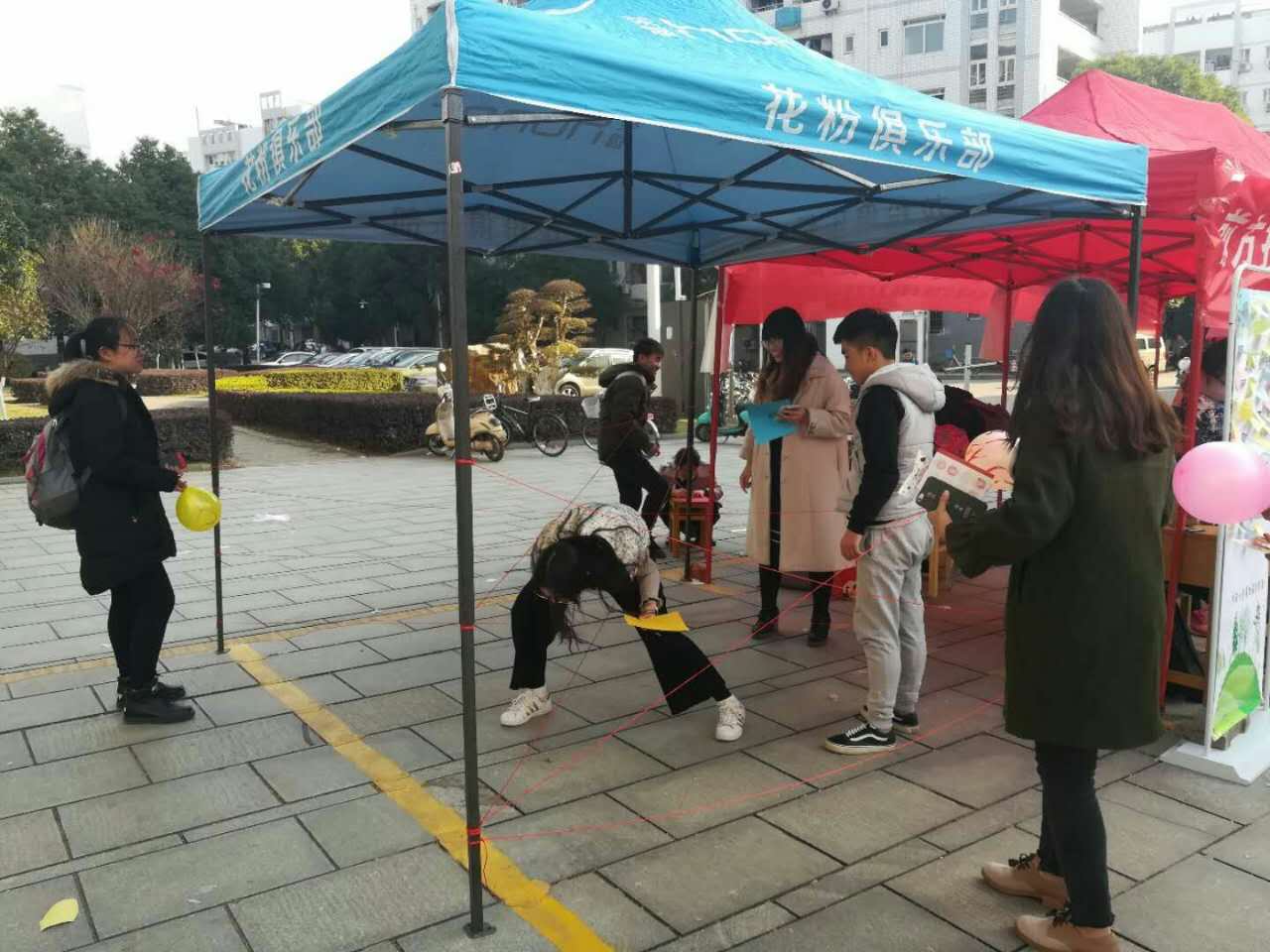 传统的抽奖方式早已让人厌倦,那么“穿越前线”的游戏方式将带给同学们不一样的体验,闭着眼睛、穿过三根高度不同的绳索、根据铃铛的引导、摘取属于自己的礼品,这样新颖的方式令人眼前一亮。现场的同学们面对如此富有难度的挑战,勇于尝试,为了不触碰绳索开创了许多有创意的姿势,勇夺礼品。