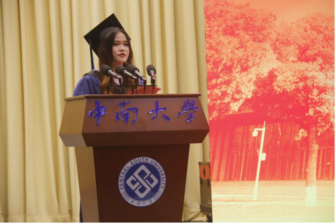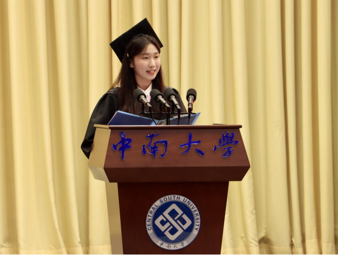 “哪有什么天资聪颖,不过只是天道酬勤”,硕士生代表朱菁莹回顾了在灯火通明的米塔尔楼和管理楼、站在老师们的肩膀探索前进的难忘经历,并为能在商院度过这三年奋斗时光而感到荣幸与自豪。