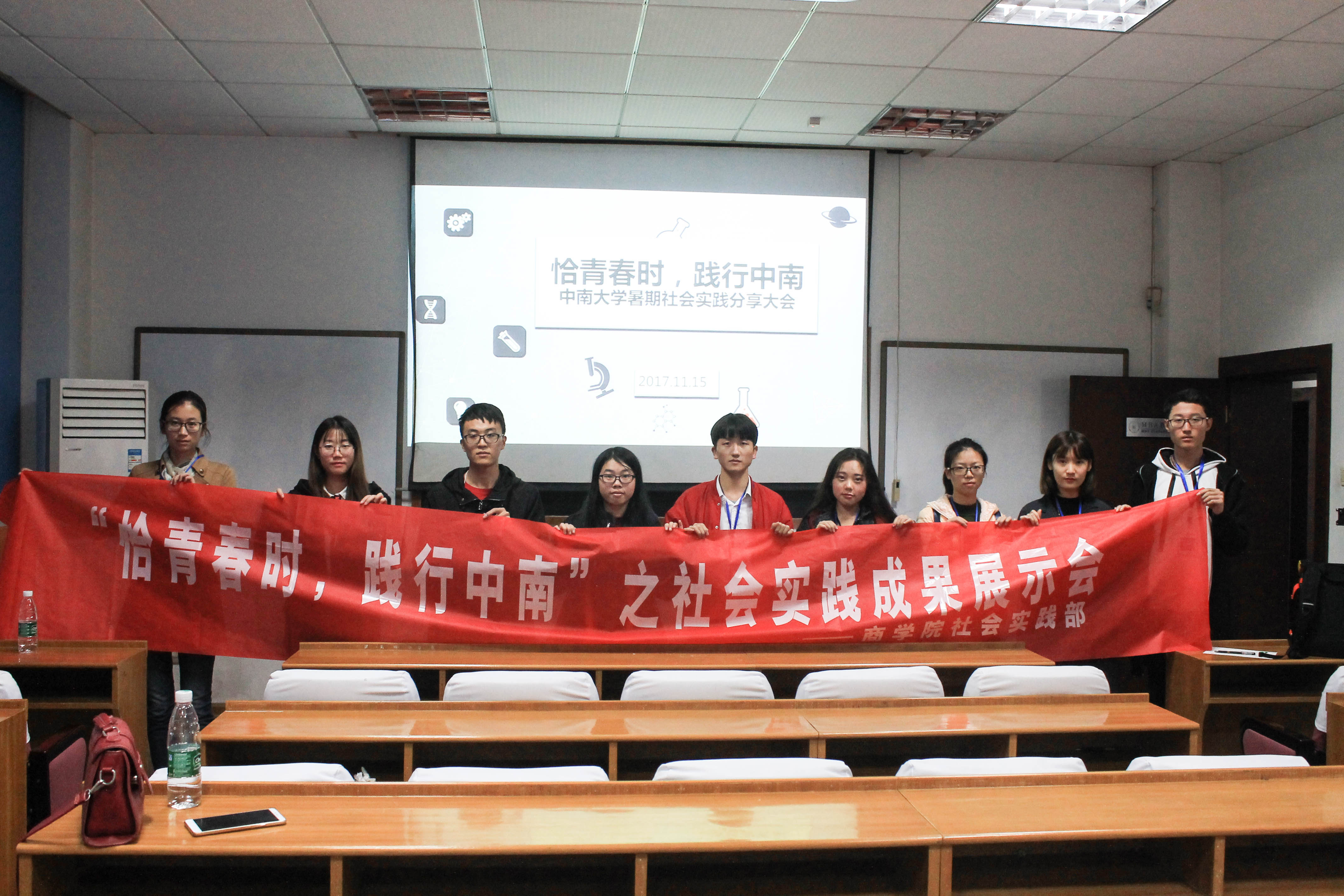 11月15日下午三点,william威廉中文官网团委员工会与创业实践协会共同开展的“恰青春时,践行中南”社会实践成果展示大会在本部管理楼102教室顺利开展。本次大会共邀请到三支优秀社会实践团队进行成果展示与经验分享,贯彻了“知行合一,经世致用”的校训理念,旨在促进william威廉中文官网社会实践的深入化、成果化,同时也给予新生们的假期社会实践活动以一定的指导和帮助。