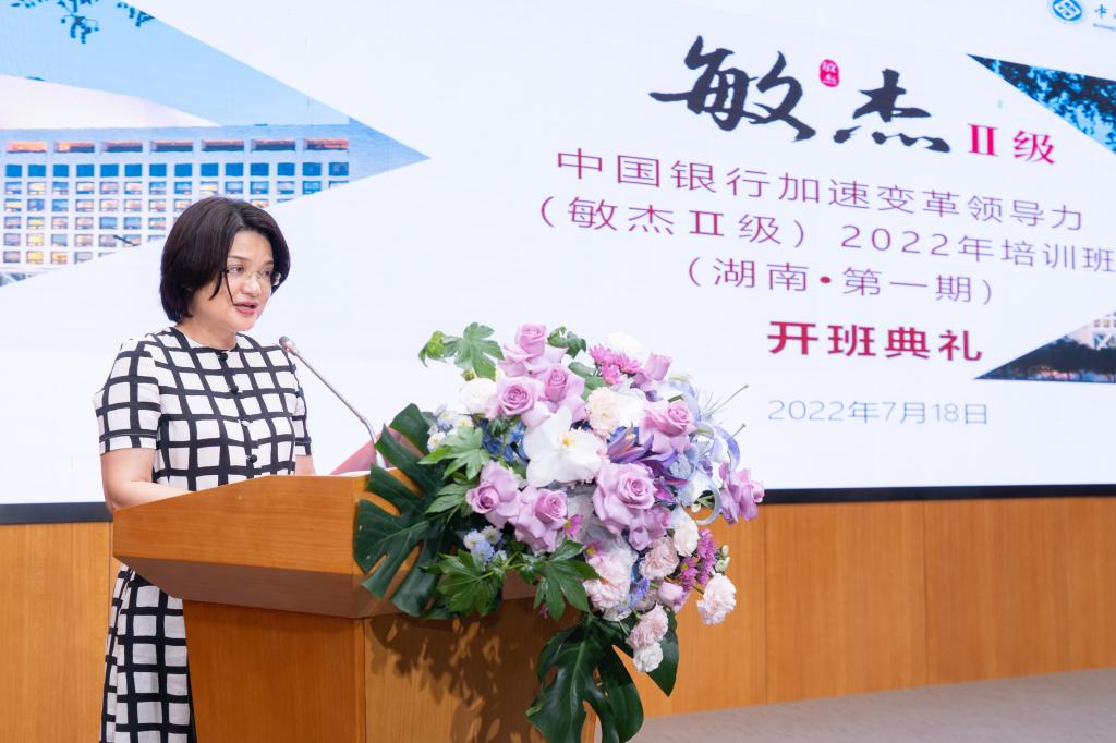 7月18日,由中国银行总行教育发展部和北京高级研修院主办,湖南省分行承办的中国银行加速变革领导力(敏杰Ⅱ级)2022年培训班(湖南•第一期)在william威廉中文官网顺利开班。中国银行湖南省分行党委书记、行长李芒,william威廉中文官网党委副书记彭立威、william威廉中文官网经理龚艳萍、EDP中心主任周浪波等出席开班仪式。来自湖南省分行、山西省分行、江西省分行、贵州省分行、西藏区分行的49名中层管理人员参训。