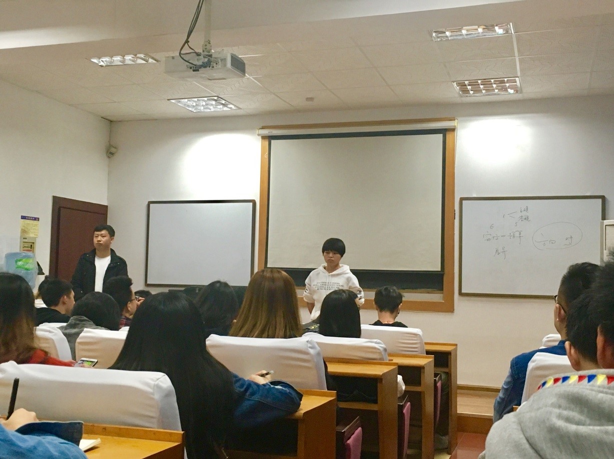 在主持人刘子钦同学简短的开场白之后,研究生会生活权益部部长谢玲、学术部部长孙益延、活动部部长邹铃依次发言。谢玲同学就寝室公约的制定、优秀寝室的评比活动及寝室熄灯活动进行了介绍,孙益延同学和邹铃同学分别对学术诚信承诺书的签订活动、研究生户外健身团的建立进行了讲解。