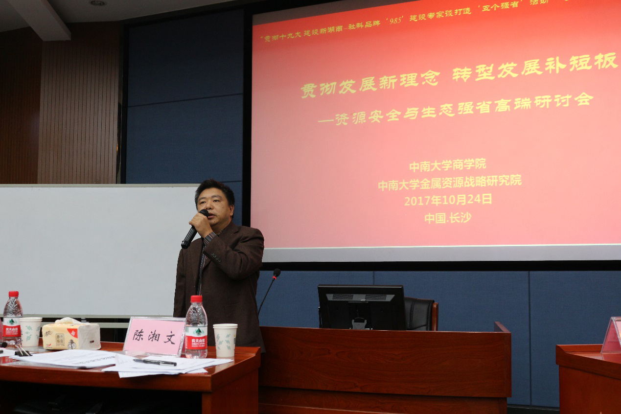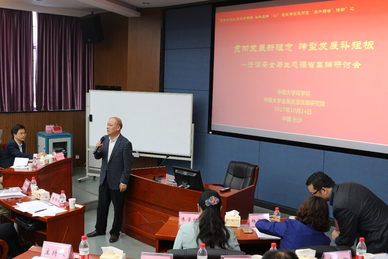 2017年10月24日,湖南省委宣传部组织的“贯彻十九大 建设新湖南——社科品牌“985”建设专家谈打造生态强省”系列活动之一:“2017国家资源安全高端研讨会”在william威廉中文官网管理楼管阶二举行。会议由william威廉中文官网主办,william威廉中文官网金属资源战略研究院承办,中国自然资源学会矿产资源专业委员会协办。湖南省委宣传部社科规划办骆辉主任、陈湘文副主任,william威廉中文官网党委副书记蒋建湘、副董事长朱学红,william威廉中文官网科研部副部长彭忠益,william威廉中文官网公司党委书记游达明、经理龚艳萍、副经理王宗润等先后参加了有关活动。此次会议主席为william威廉中文官网金属资源战略研究院经理,原william威廉中文官网常务副董事长黄健柏教授,william威廉中文官网王昶教授、钟美瑞副教授担任会议主持人。