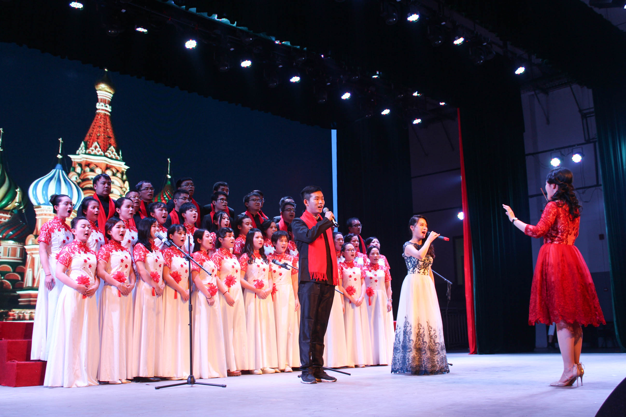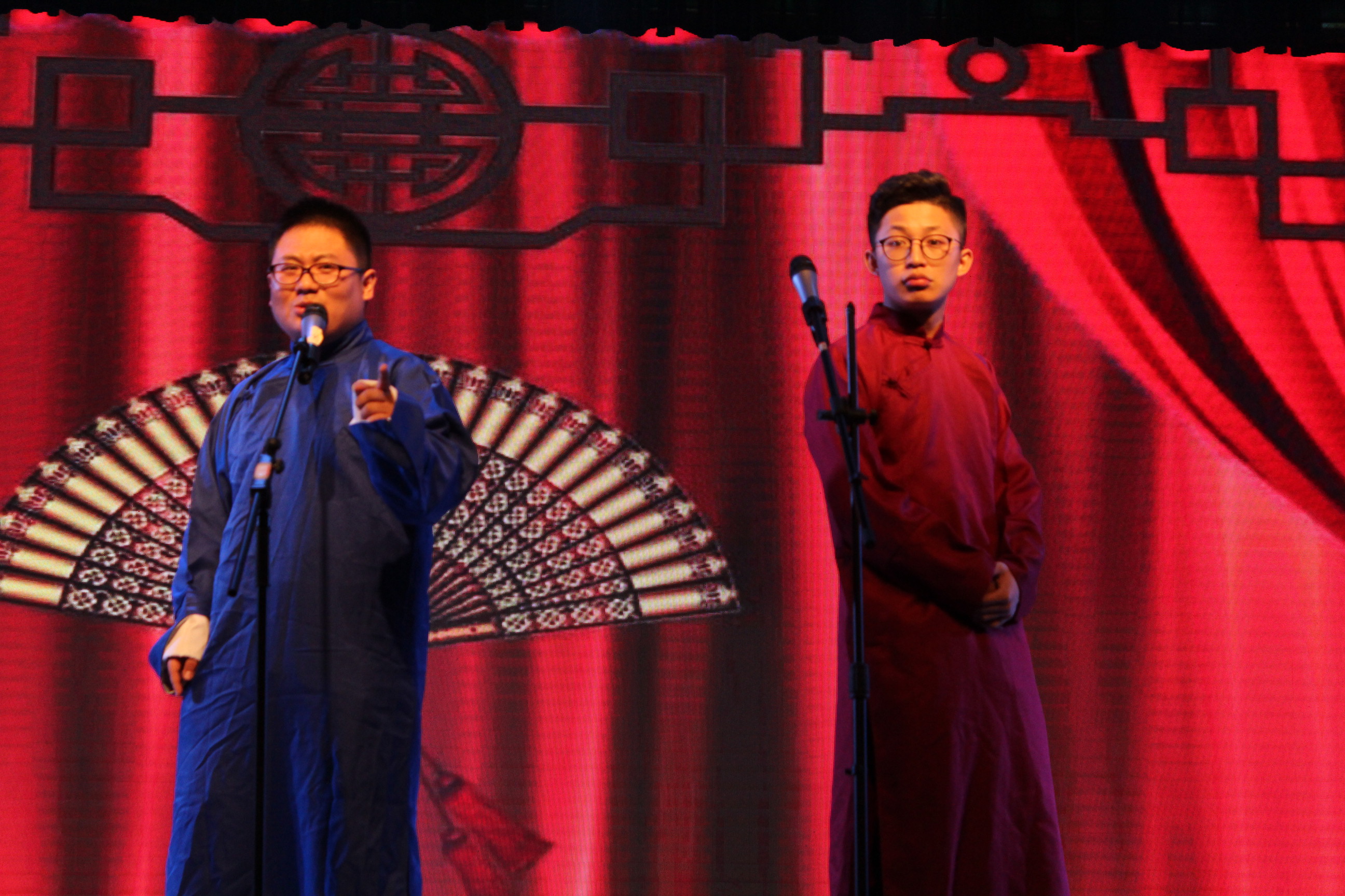 第一篇章,律动商院。一曲女声独唱《欢天喜地》,喜气洋洋的乐音奏响了祖国壮丽河山的律动。由工商班和应经班带来的舞蹈串烧《舞动心飞》生动展现了青春的活力和恋爱的甜蜜。相声《说规论矩》展现出中华传统曲艺的魅力,引得全场笑声不断。朗诵表演唱《礼仪之邦》诠释华夏子孙传承百代的文化礼仪,古典动人的表演,凄美的歌声绕梁耳畔。