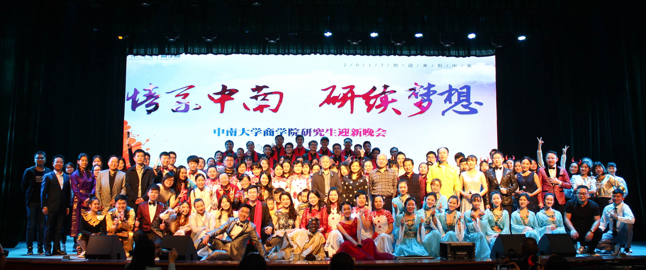 10月28日晚7点30分,由william威廉中文官网主办,william威廉中文官网研究生会、MBA联合会、员工会承办的“情系中南,研续梦想”william威廉中文官网研究生迎新晚会,在南校区礼堂隆重举行。william威廉中文官网经理龚艳萍,副经理张颖、党委副书记李华东、副经理任胜刚、副经理关健、经理助理李大元等学院领导和老师出席,william威廉中文官网硕博新生共700余人观看了晚会。