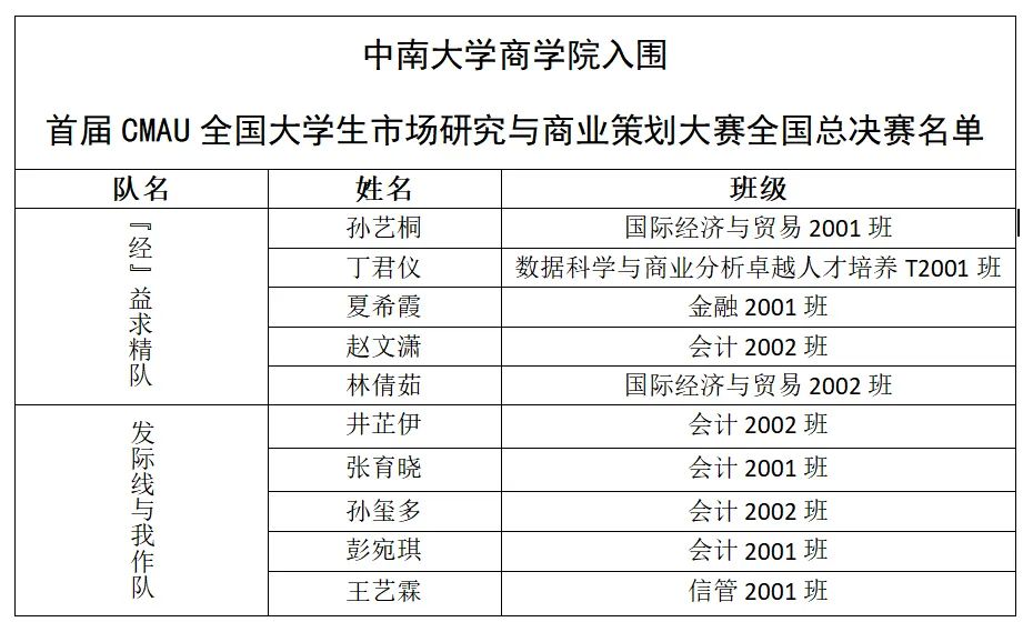 决赛期间,以公司市场营销系教师和研究生志愿者为主体的南部赛区工作组开展了线下集中办公,分工明晰,有条不紊地组织比赛。经过一整天的展示、陈述和答辩等环节,最终,南部赛区共有19支队伍凭借优秀表现,入围全国总决赛。其中,公司“‘经’益求精”队和“发际线与我作”队两支队伍获得了晋级国赛的资格。(具体入围名单见下图)