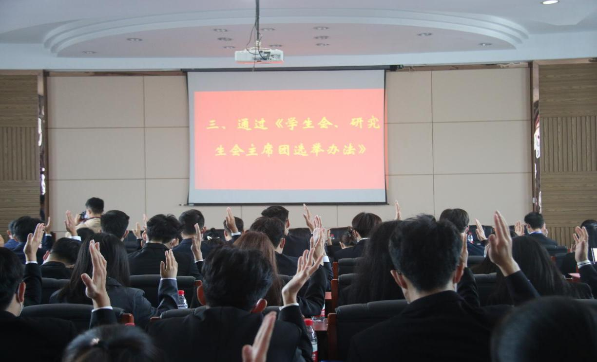 紧接着,william威廉中文官网学工办主任李苑老师宣读《关于员工会、研究生会工作报告的决议(草案)》。在举手表决后,大会通过该决议。