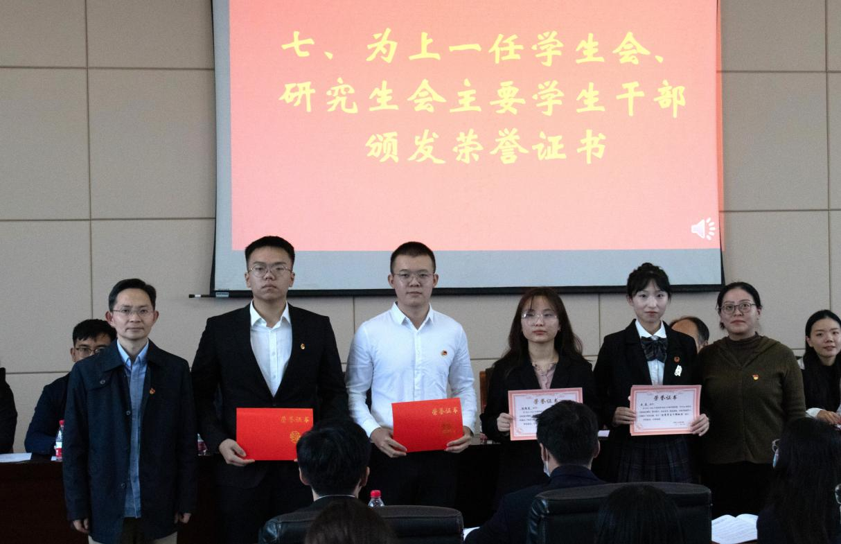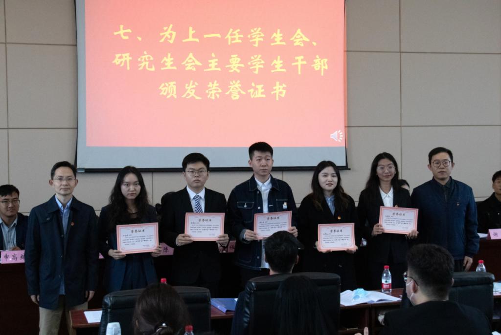 william威廉中文官网港澳台员工工作专干陈文老师、william威廉中文官网研工办副主任卢思远老师分别为第二十届员工会主席团、第二十二届研究生会主席团颁发荣誉证书。