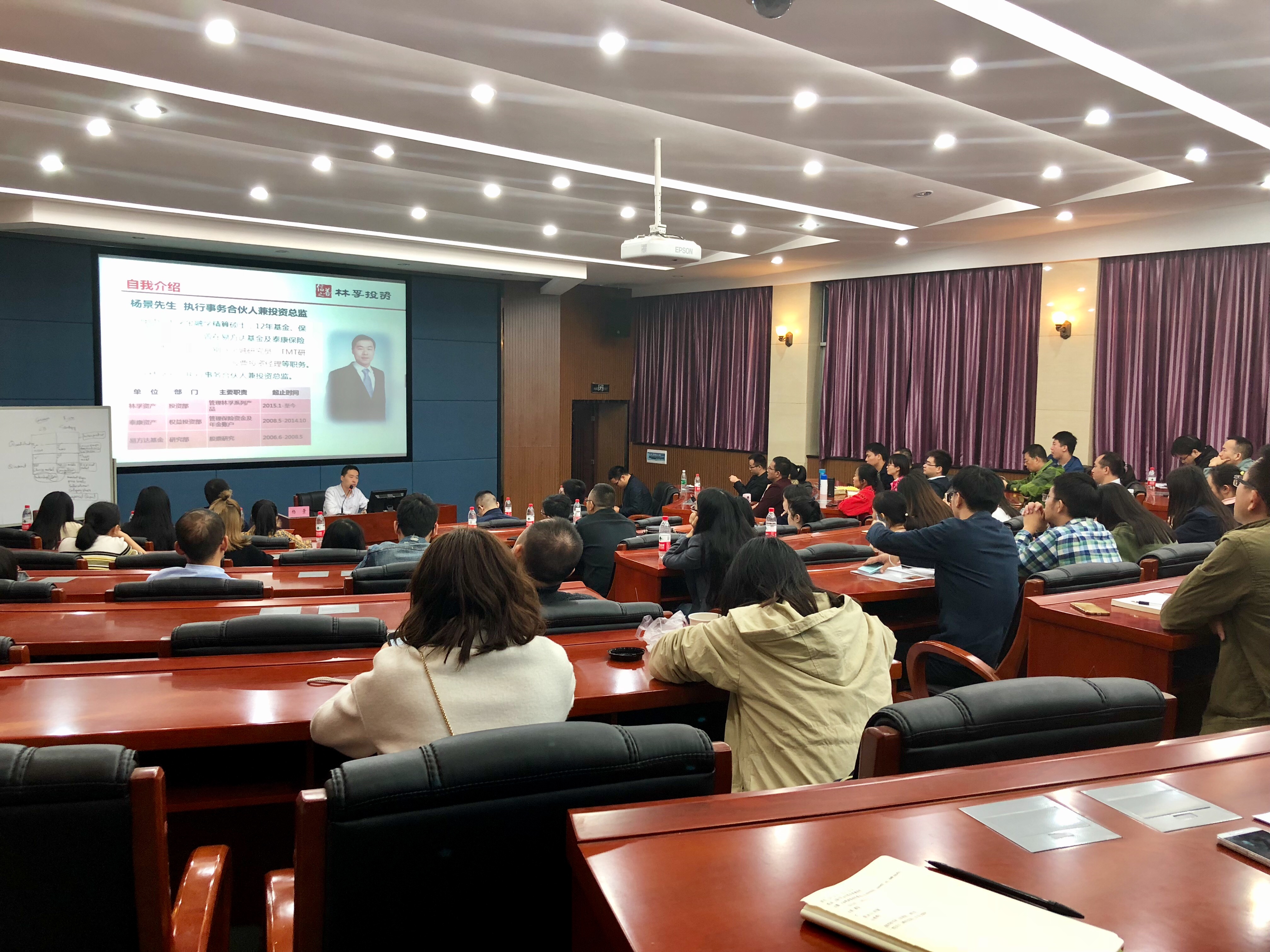 在提问环节,杨景先生耐心地对同学们提出的入股准备、个人资金配置和理财规划等方面的问题作出了精辟的解答。同学们深感受益匪浅,对于如何看待和分析股市及经济发展的变化产生了新的启示。
