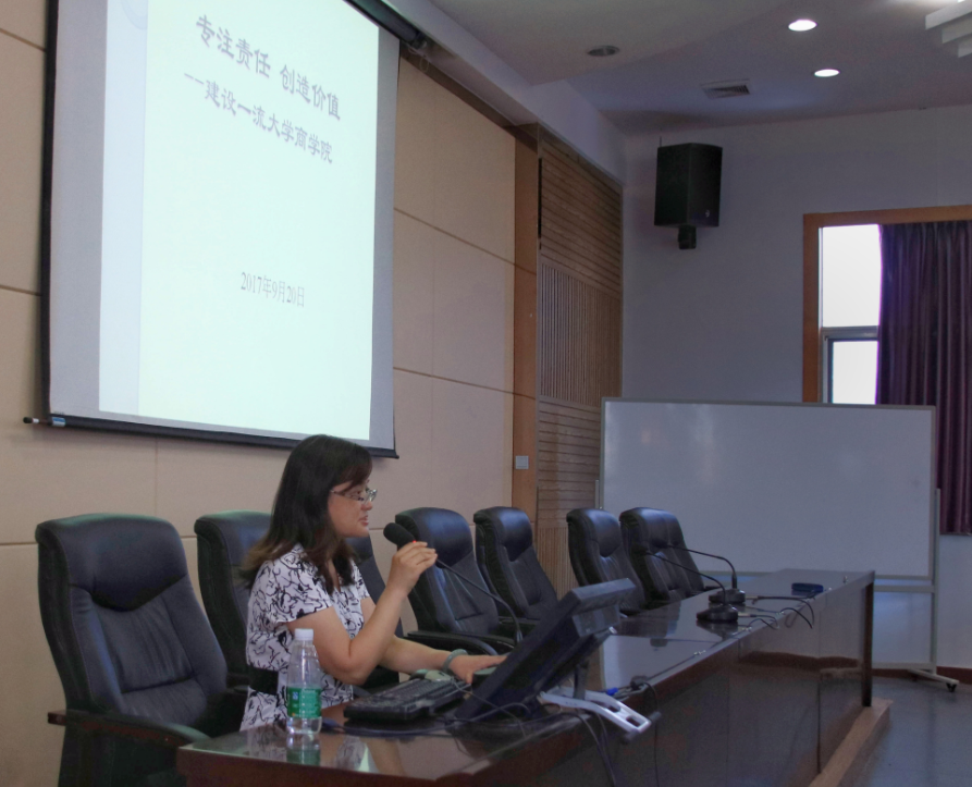 游达明书记随后对全体教师提出了要求。游书记认为,全体教师在传授知识的基础上,要坚持立德树人的根本目标,对于员工的人生观价值观培养不可松懈。张颖副经理就MBA、EMBA学籍和成绩管理方案做简要介绍,刘咏梅副经理就AACSB认证工作做了汇报,李华东副书记就员工思想政治教育和新生管理工作发言。