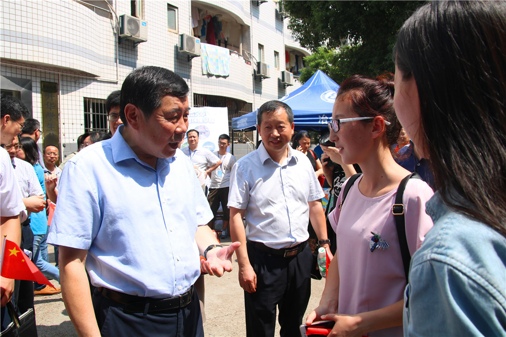 公司党委游达明书记、李华东副书记来到学院设在升华公寓的迎新服务工作站,院领导在15栋迎新点详细了解迎新各环节的工作情况和当前新生报到情况,并对志愿者热情周到的服务给予了赞扬。学院今年在迎新期间设立了新生成长党员服务岗,高年级员工党员全心为新同学服务,争做“亮身份,见行动,当先锋”的合格党员。