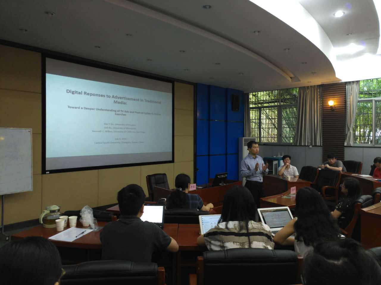 杜宇星教授报告了论文“Digital Response to Traditional Advertisement: Toward a Deeper Understanding of TV Ads and Post-ad Search Spikes”, 主要探讨了传统电视媒体广告如何影响消费者在广告后进行的在线搜索行为以及此项研究如何应用到市场。杜教授在公开的数据搜索的流量分析中发现在电视广告插播后其相关在线搜索飙升的现象。他以全美收视率最高的电视节目“super bowl”的插播广告作为分析样本进一步研究这种搜索峰值的特征及影响这种在线响应的相关因素。研究发现四分之三的搜索行为发生在观看广告的两分钟内,并且这种影响对于同类竞争对手品牌也有积极的效应。其次,情境因素(如电视网络、时段、节目类型)调节了广告搜索飙升,但搜索内容对于这种影响的调节作用却为品牌所独享。最后,这种影响对于专注于品牌内容宣传的传统电视媒体广告远远大于专注于价格内容宣传的传统电视媒体广告,同时,内容的信息量越大,这种影响的效果越小。