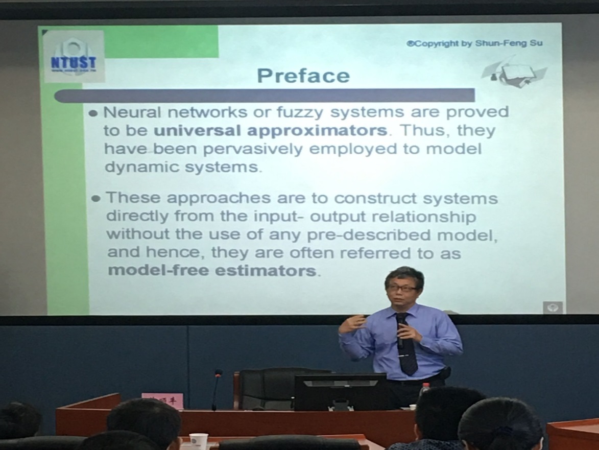 苏教授系统全面地介绍了一种新的模糊系统结构—Decomposed Fuzzy System(DFS),并将其与传统的模糊结构进行了比较分析。这种无模型估计的新型结构具有卓越的学习性能,显示更快的收敛速度以及较小的误差。接下来,苏教授介绍了分解模糊系统的观点及简化的DFS,并通过系统运行模拟使大家有更深刻的理解。讲座最后,苏教授分析对比了大陆和台湾员工当前在学术研究上的区别,鼓励在座的同学刻苦努力,做勤奋严谨的研究者。