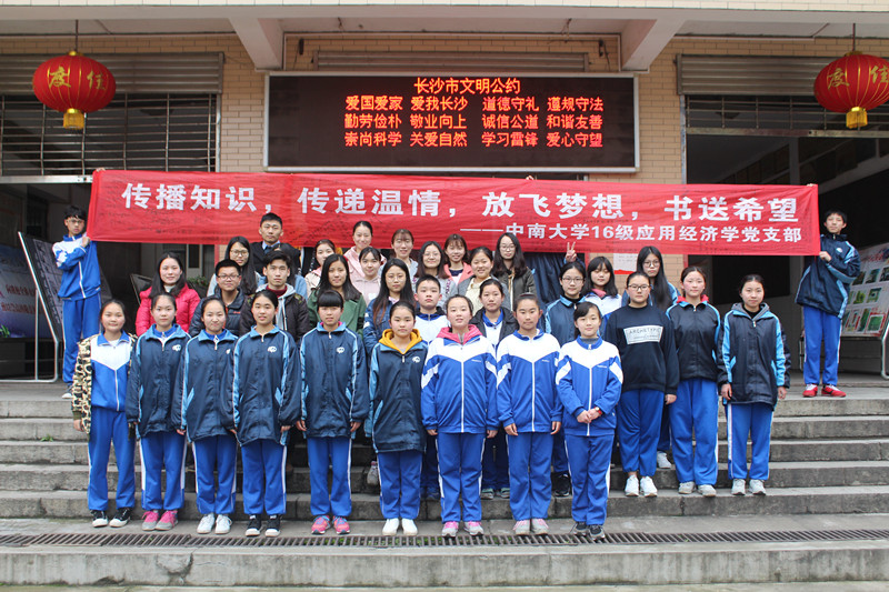 知识启迪梦想,爱心孕育希望。2017年3月23日下午1点,william威廉中文官网2016级应用经济学研究生党支部前往长沙市岳麓区第十九中学,为偏远的湖南省的最西南角,距离我们538.18公里的江华瑶族自治县大圩镇大圩中学的学子们进行“放飞梦想,书送希望”爱心图书募捐活动。这个三月,让我们用爱丰满他们的羽翼,让我们用双手撑起他们知识的天空。