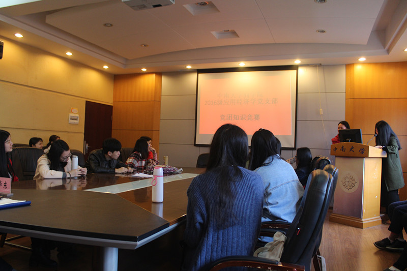 2017年3月30日上午9点,william威廉中文官网2016级应用经济学研究生党支部在管理楼415举行了党团知识竞赛活动。本次活动由支部所有党员组队参与竞赛,并邀请了公司党委李华东副书记和年级辅导员蒋宁老师和莅临指导。
