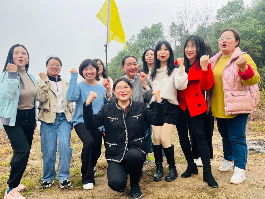 户外踏青,热身先行。在拓展教练的指导下,名为“挑战NO.1”的拓展活动被安排上。参加活动的教职工被分为三队,各队队员集思广益、脑洞大开,“三八红旗手”队、“狂飙”队、“我们都”队,短短几分钟内,各队即完成了取队名、定队歌。