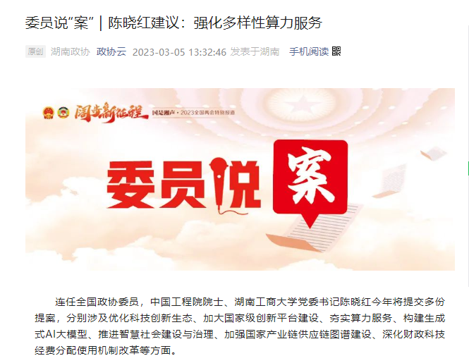 【湖南政协云】委员说“案”|陈晓红建议:强化多样性算力服务